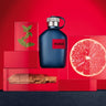 Til den modige rebel! Nu lanceres HUGO JEANS Eau de Toilette for Men – en dristig og frisk duft til dig, der elsker at gå dine egne veje. Topnoter af saftig grapefrugt og frisk lime blander sig med hjertenoternes pebermynte og enebær og skaber et boost af energi. Fine noter af sandeltræ kombineres med vetiver og cedertræ, der giver duften en indbydende varme – og helheden er uimodståelig. Denne maskuline eau de toilette kan bæres hvor som helst og når som helst – Ligesom et par jeans, der passer helt perfekt. HUGO JEANS-lommelærken er lakeret i en mat, denimblå farve med rødt og sort logo som på de ikoniske HUGO-jeans. Lommelærken har en kontrasterende sølvhætte med en elegant, blå tekstilstrop. Det perfekte look! Se alle HUGO-duftene: MAN og JEANS.